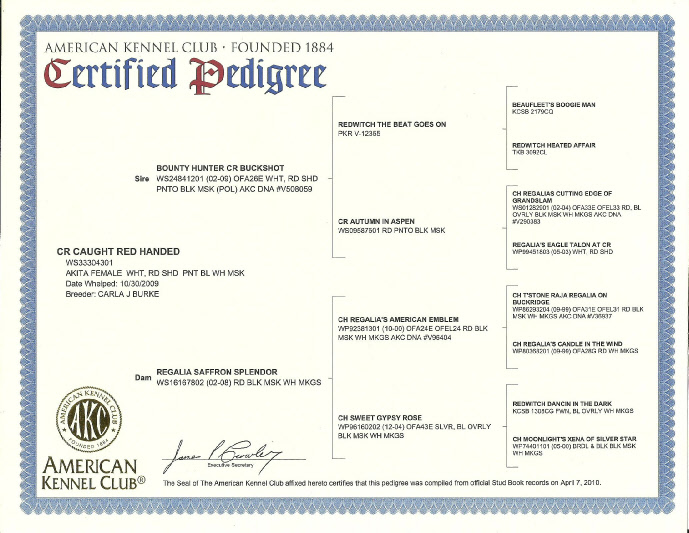 Her call name is “Felony” and she is the granddaughter of International Champion, Jnr Ch, Ch Redwitch The Beat Goes On, and descendent of the famous Regalia bloodline. She is a sweetheart and quite playful for an Akita. This was a small litter but she did a fantastic job whelping and caring for her two beautiful, healthy puppies.